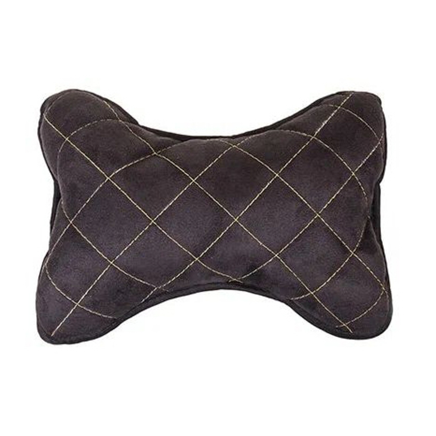 яяяПодушка автомобильная на подголовник, SKYWAY, EXPENSIV, алькантара, черная, строчка золотая 7383474