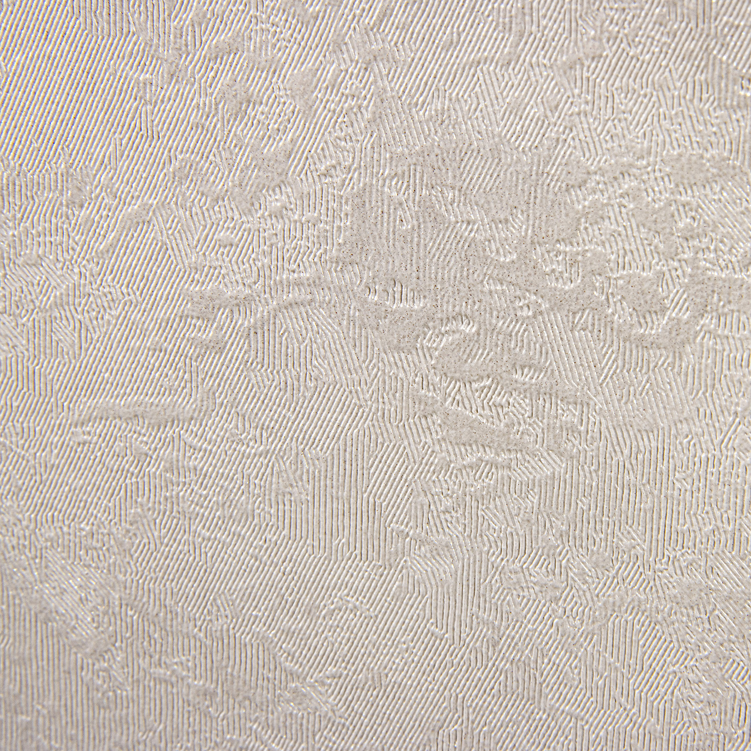 Фон коллекции имитирует текстуру необработанной штукатурки, а перламутровое напыление с неглубоким тиснением подчеркивает ее. Фон выполнен в спокойных тонах, он гармонично дополняет и усиливает впечатление от волнообразной абстракции мотива.