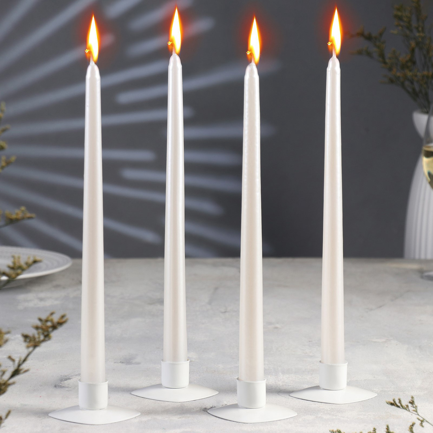 Набор свечей античных, 2.2×30 см, 4 шт., перламутровый металлик 9814705