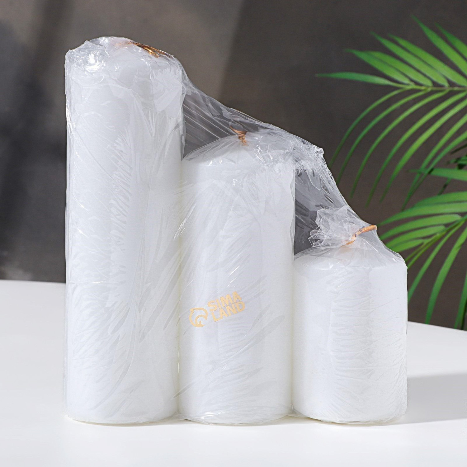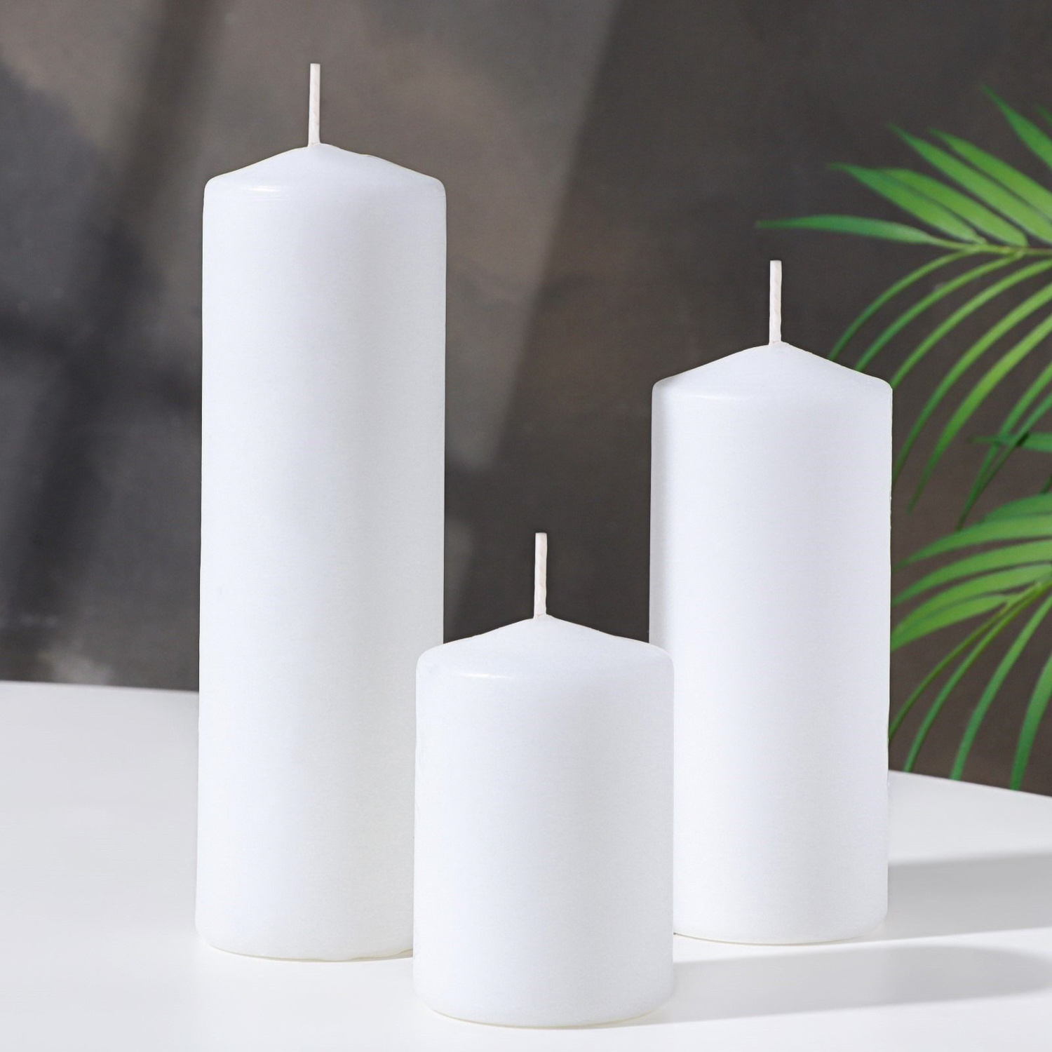 Набор свечей - цилиндров 3в1 (6х14 см, 6х19 см, 6х8,5 см), белый 9383690
