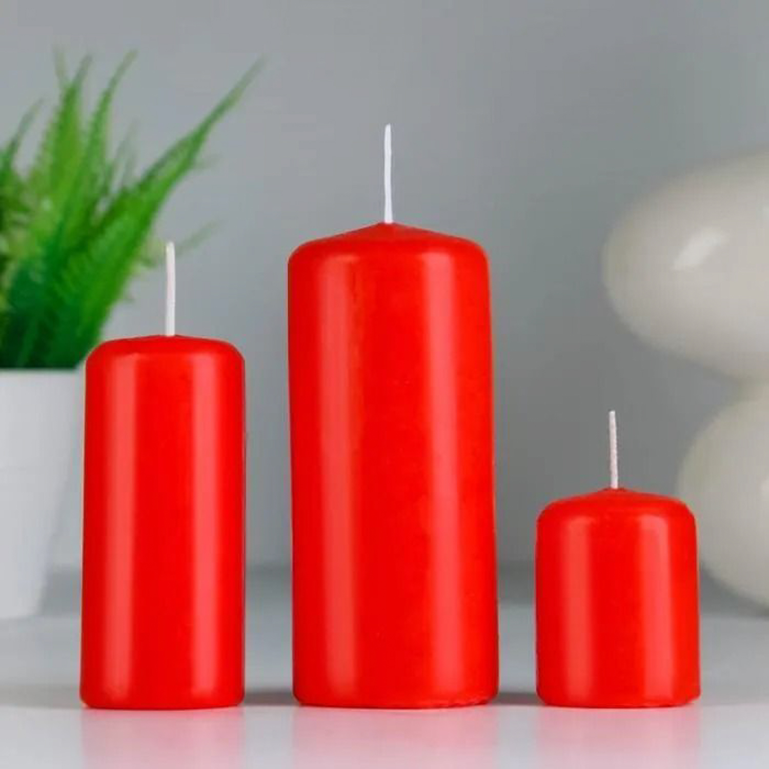 Набор свечей - цилиндров, набор 3 шт, красная (4х5 см, 4х9 см, 5х11,5 см) 7088601