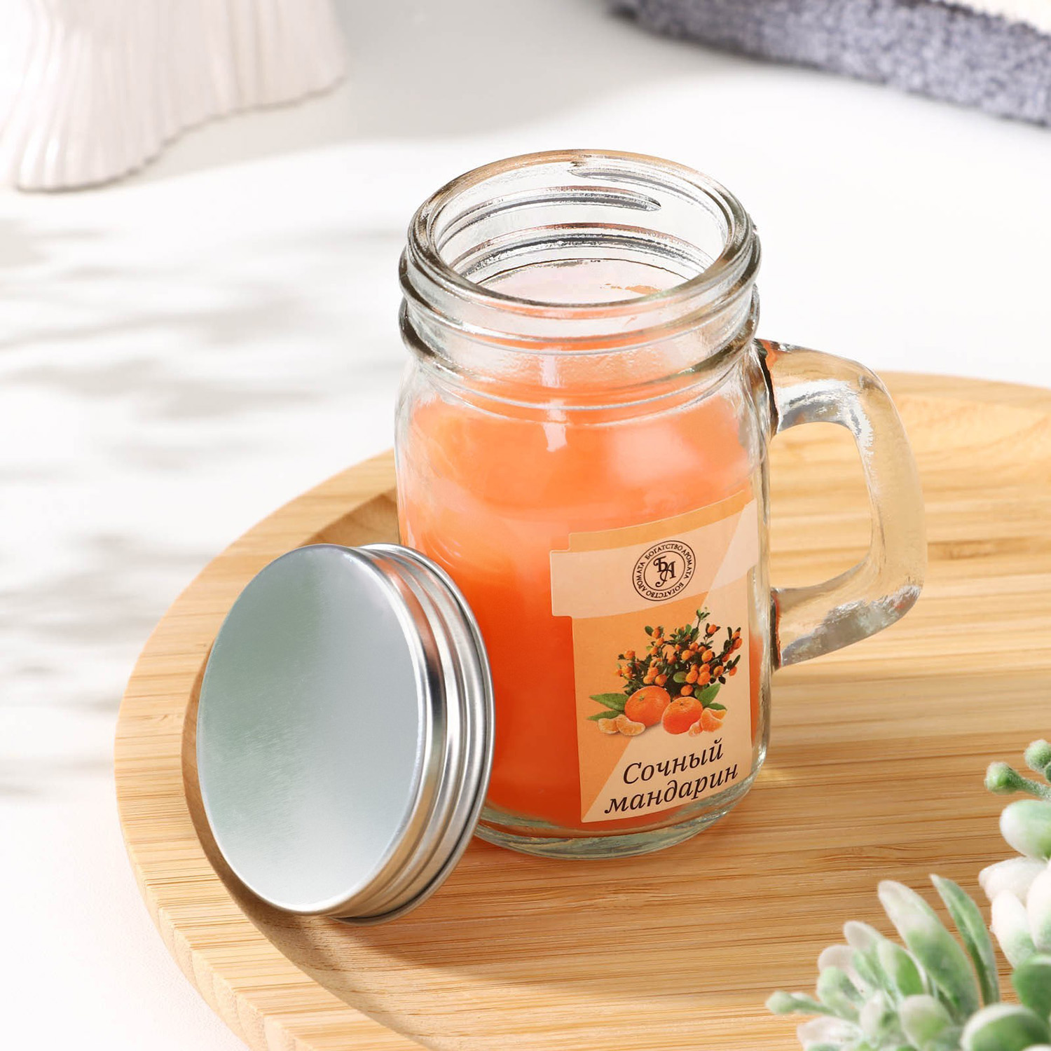 Свеча ароматическая в банке "Сочный мандарин", 7,2 х 8,5 см, 190 г 9485658