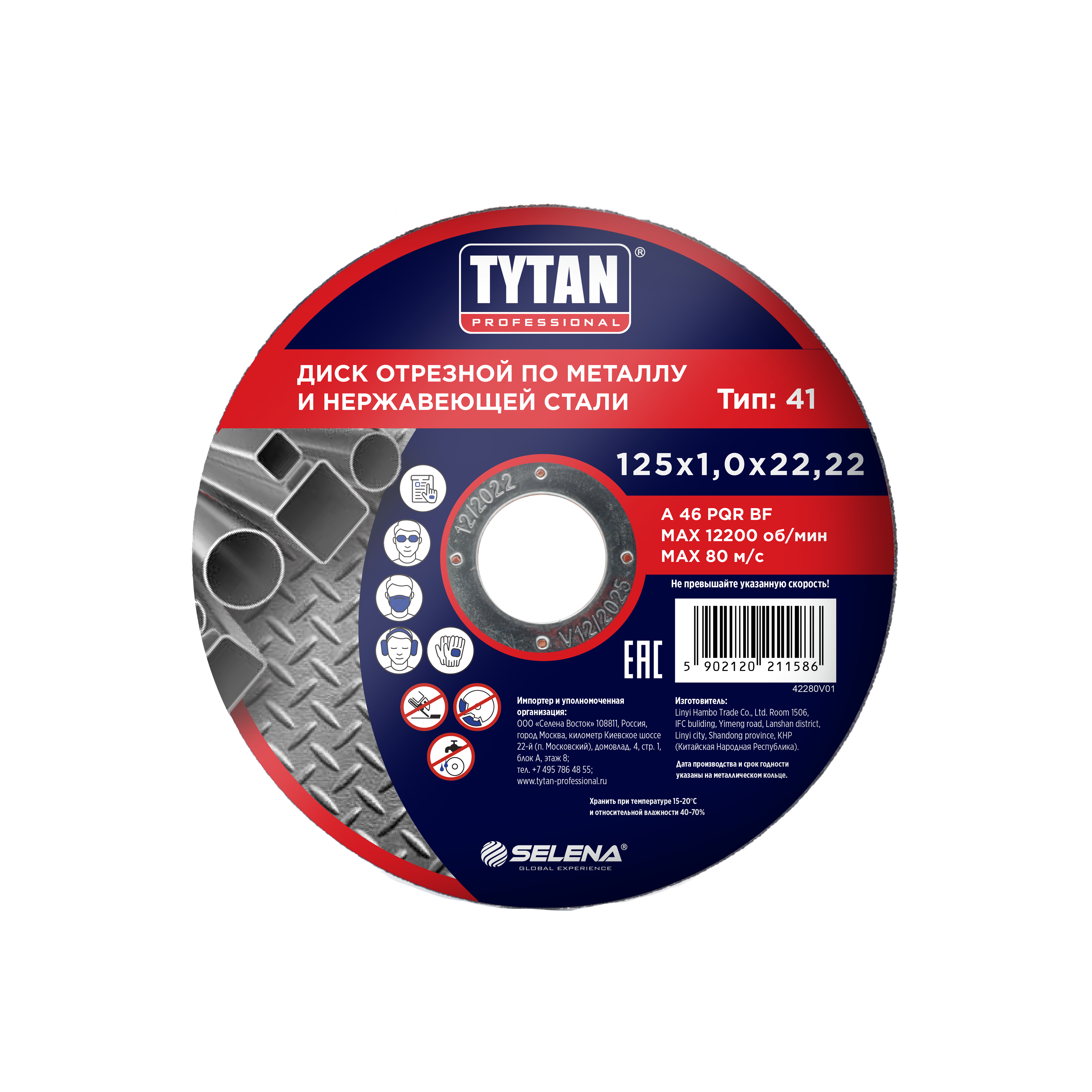Круг отрезной 125*1,0*22.22 по МЕТАЛЛУ + нерж.стали арт.11586 TYTAN *10/50/400