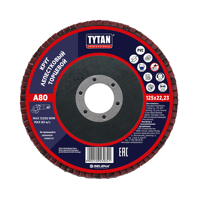 Круг шлифовальный лепестковый торцевой 125*22,23мм A 80 оксид алюминия TYTAN *10/200