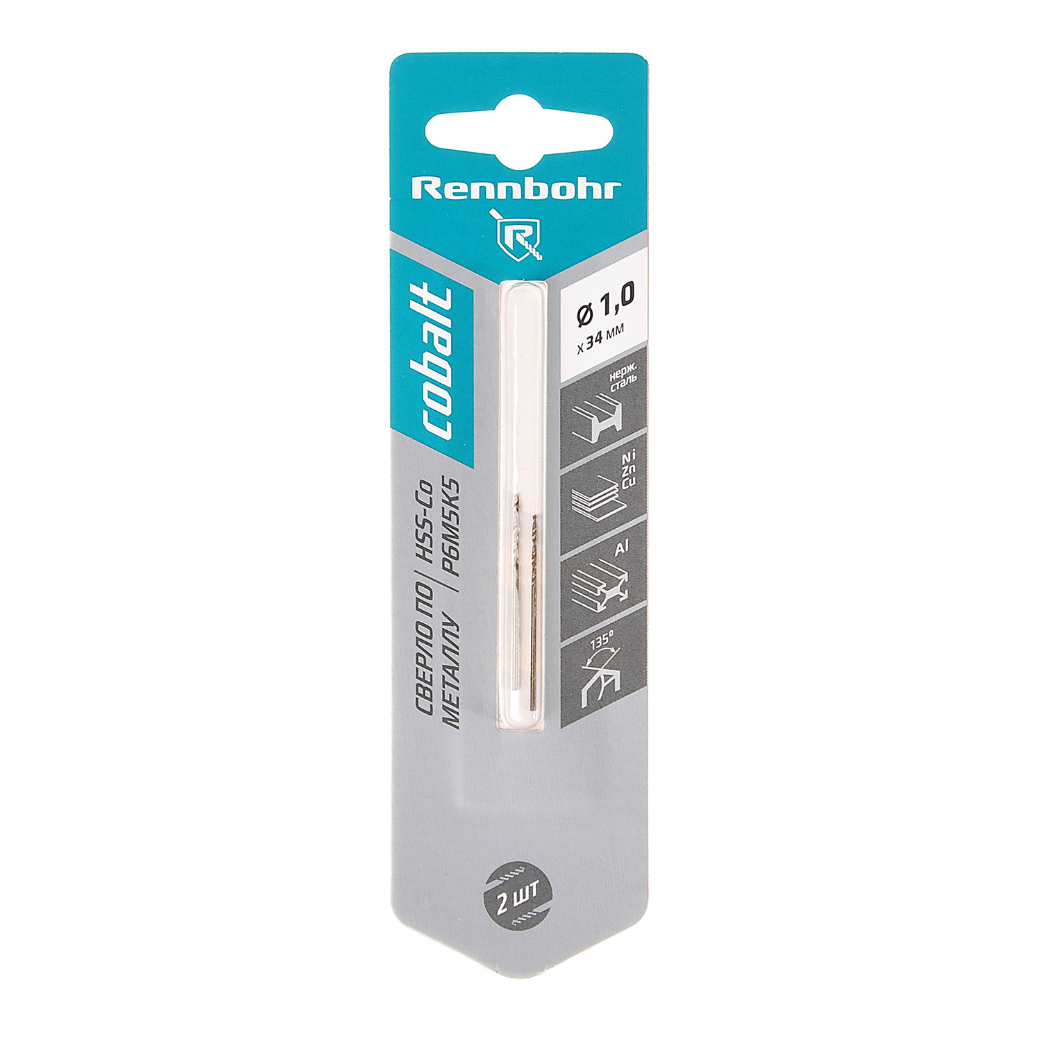 Сверло по металлу 1,00*34/12мм HSS-Co P6M5К5 (2шт) блистер арт.668010 COBALT RENNBOHR *10/40/640