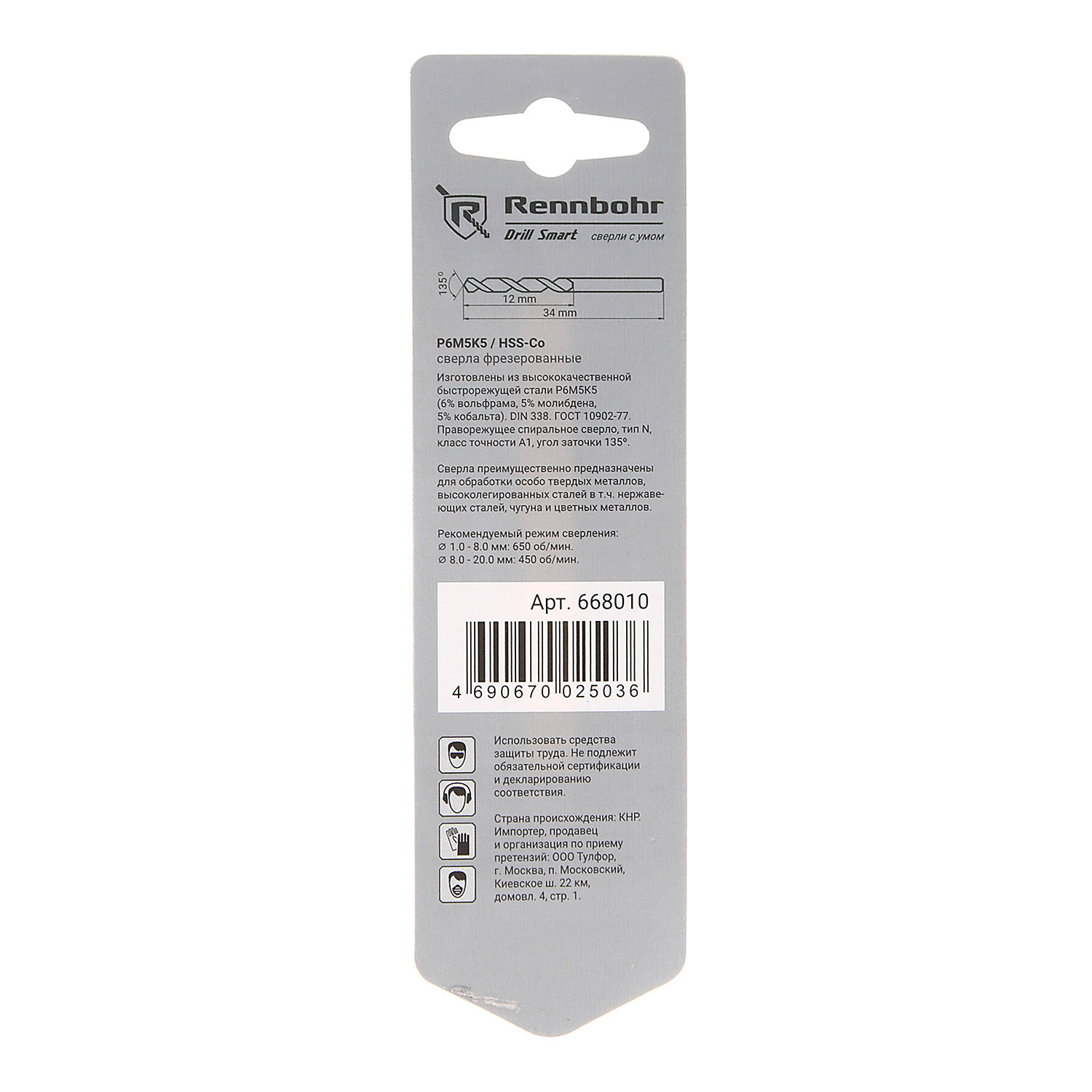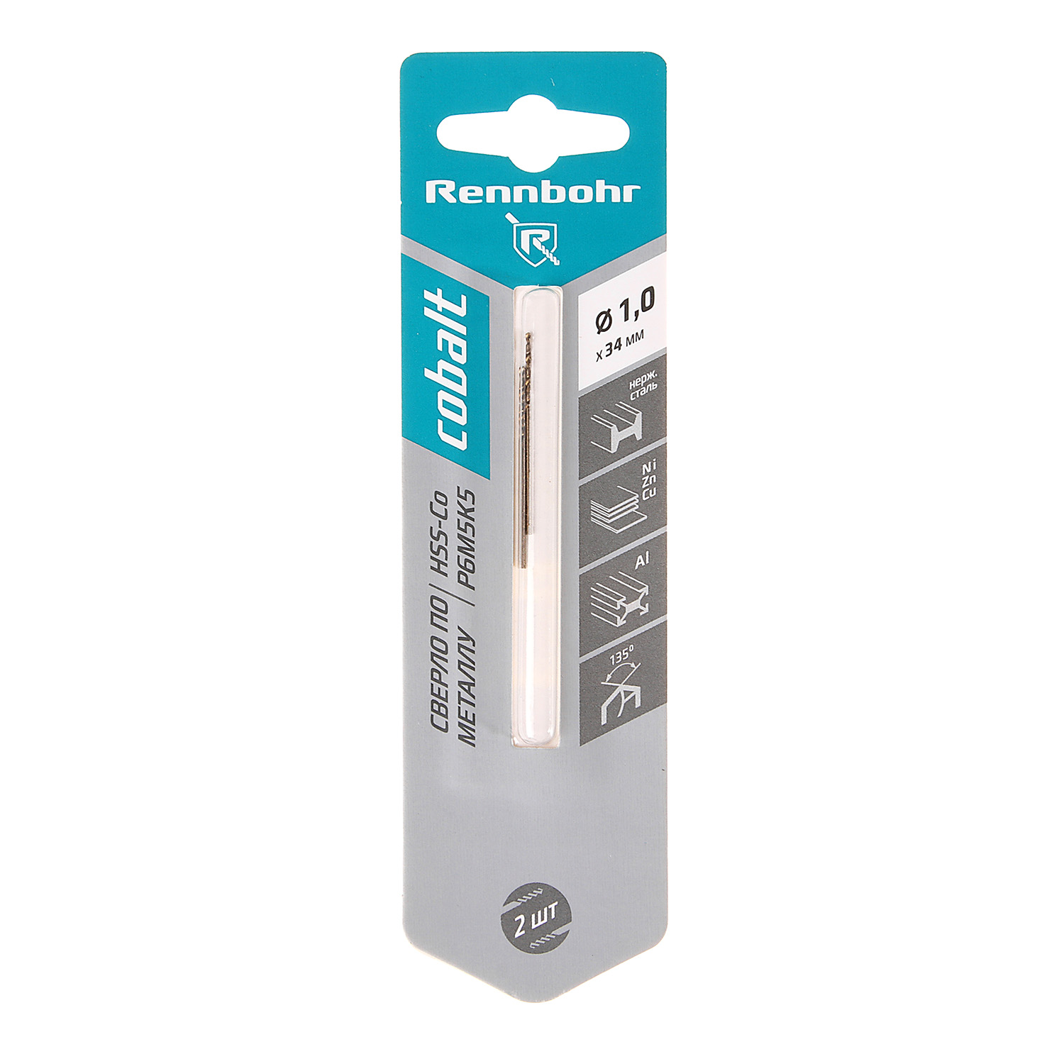 Сверло по металлу 1,50*40/18мм HSS-Co P6M5К5 (2шт) блистер арт.668015 COBALT RENNBOHR *10/40/640