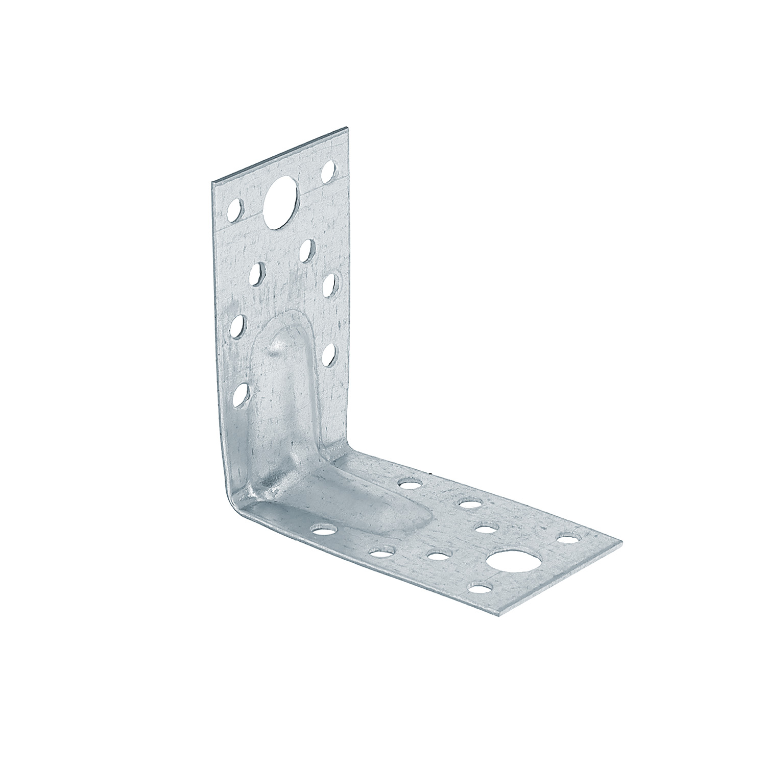 Уголок крепежный равносторонний усиленный KUU-70х40 ТехноСервис — перфорированный монтажный элемент с ребром жесткости на сгибе для создания высокопрочных соединений под углом 90°.