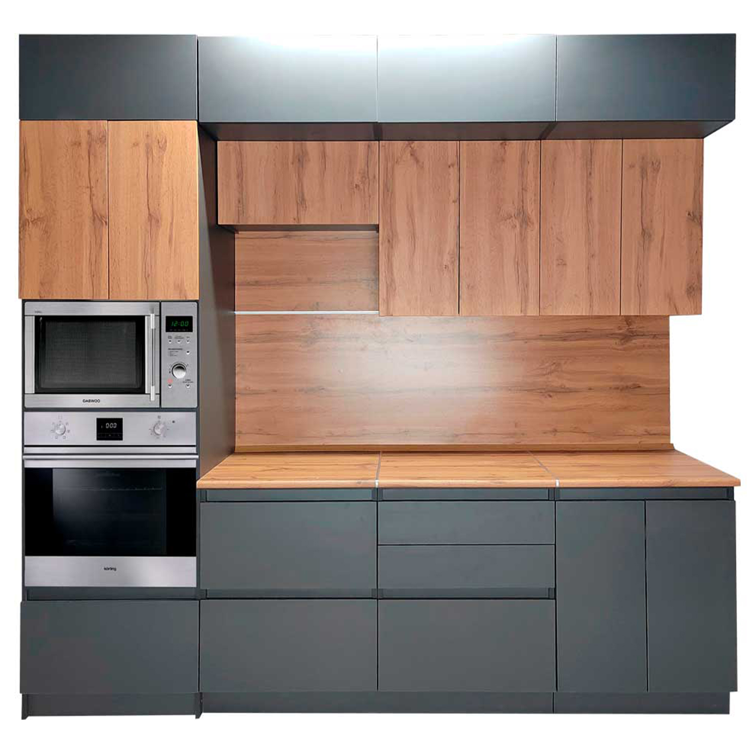 Фасад 717х446 мм, цоколь 96х450 мм, столешница 450 мм, ручка рейлинг, крепеж