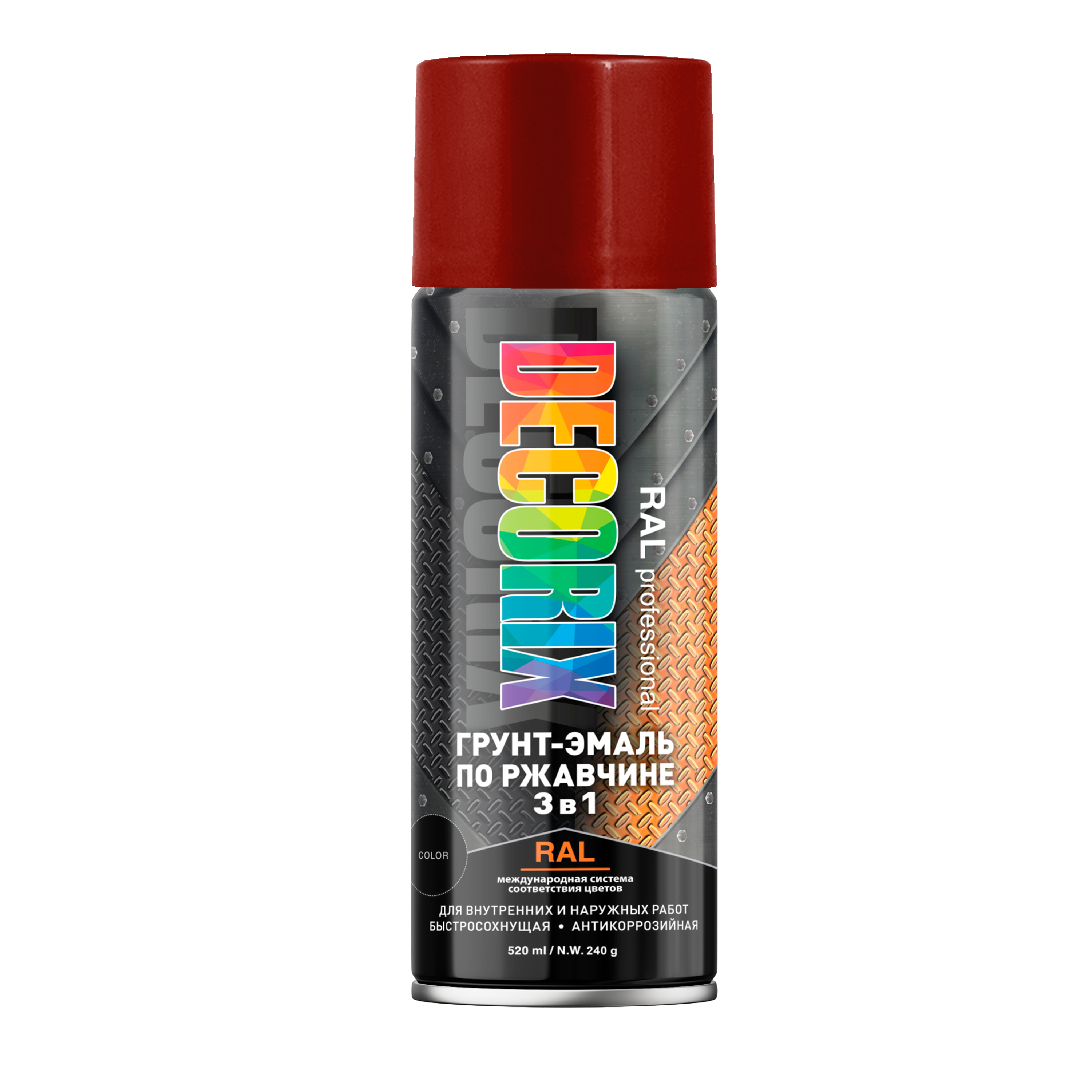 Грунт-аэрозоль по ржавчине 3 в1 винно-красный глянцевый 520/200 мл DECORIX RAL 3005 *1/12