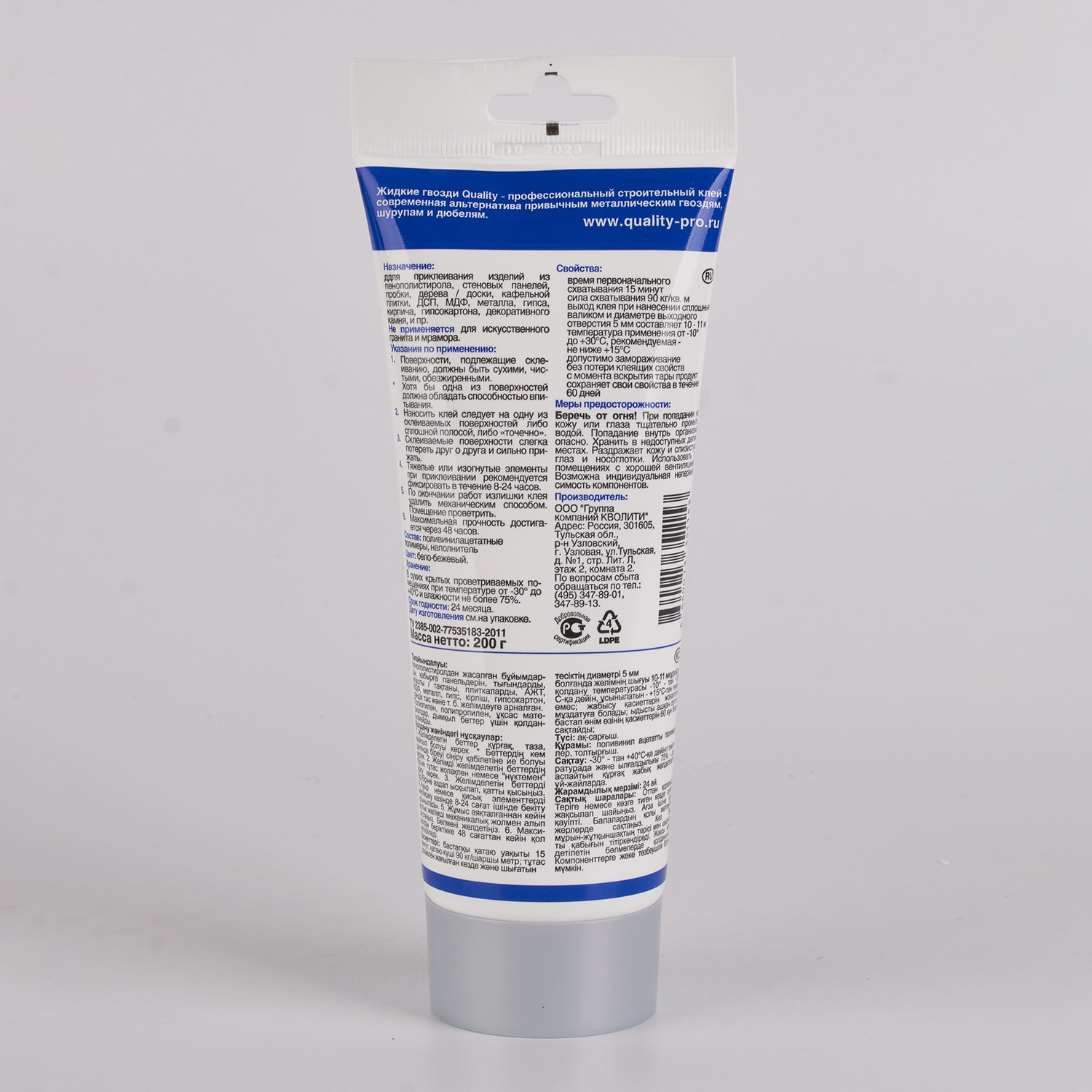 Жидкие гвозди 200 г Quality, универсальный, белый