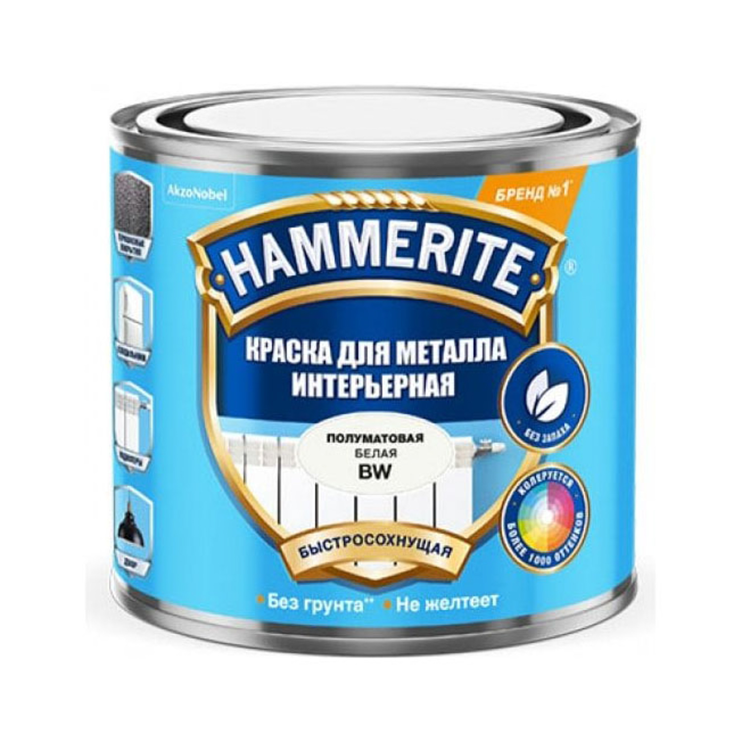Краска по металлу интерьерная 0,5 л Hammerite BW *1/6