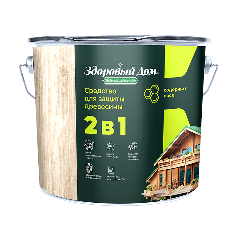 Деревозащитное средство Здоровый дом 2 в 1 орех 9 л представляет собой высокоэффективное покрытие для декоративной отделки древесины и защиты поверхностей на срок до 8 лет. Формула 2 в 1 позволяет наносить состав без предварительного использования грунта.