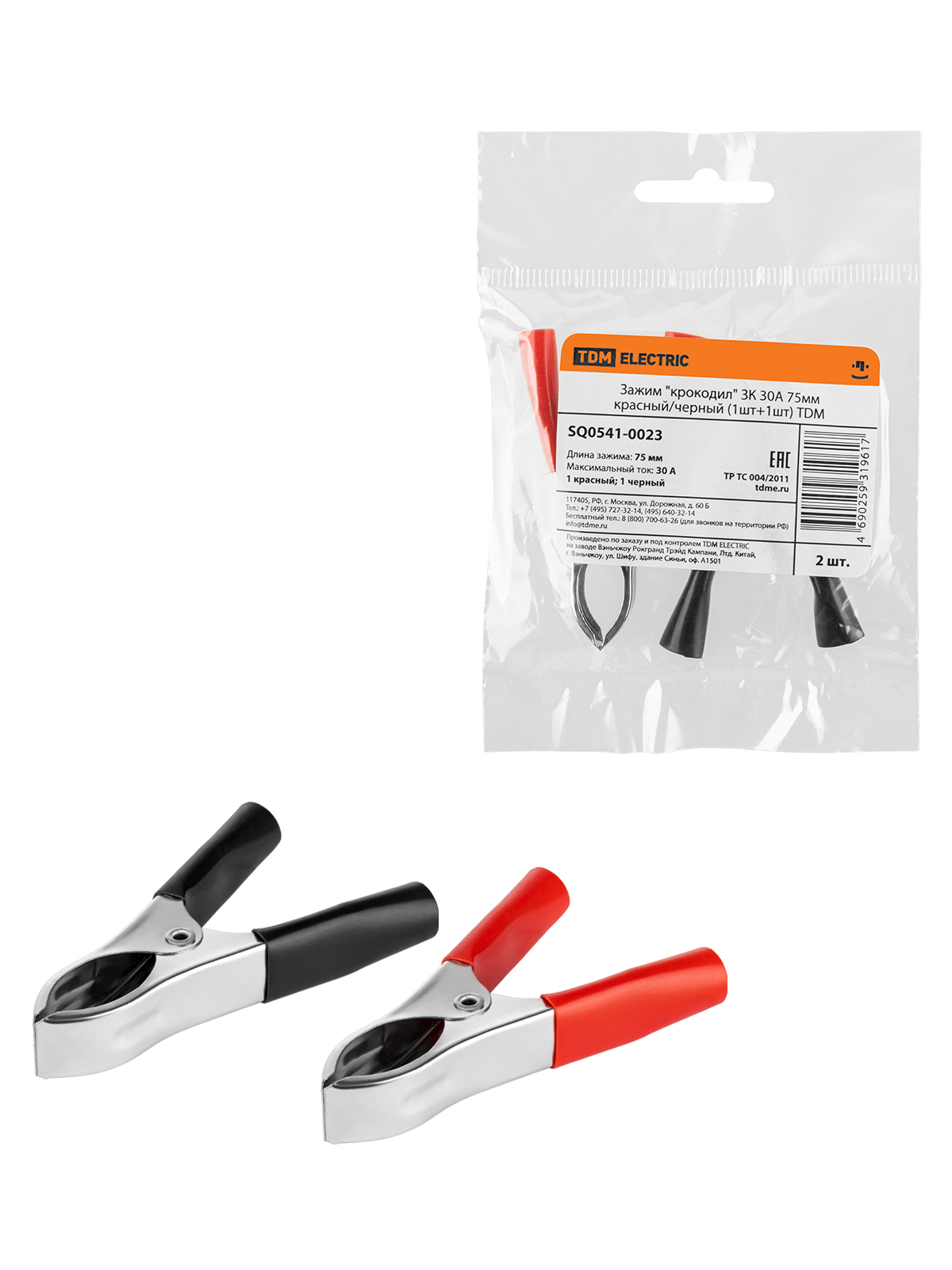 Зажим "крокодил" ЗК 30А 75мм красн/черн (2шт) TDM SQ0541-0023 *1/10/