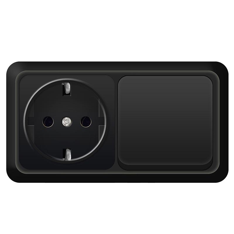Блок комбинир. "Олимп" выключатель 1кл черный + розетка  з/к 16А горизонтальный ОП Universal *5/50