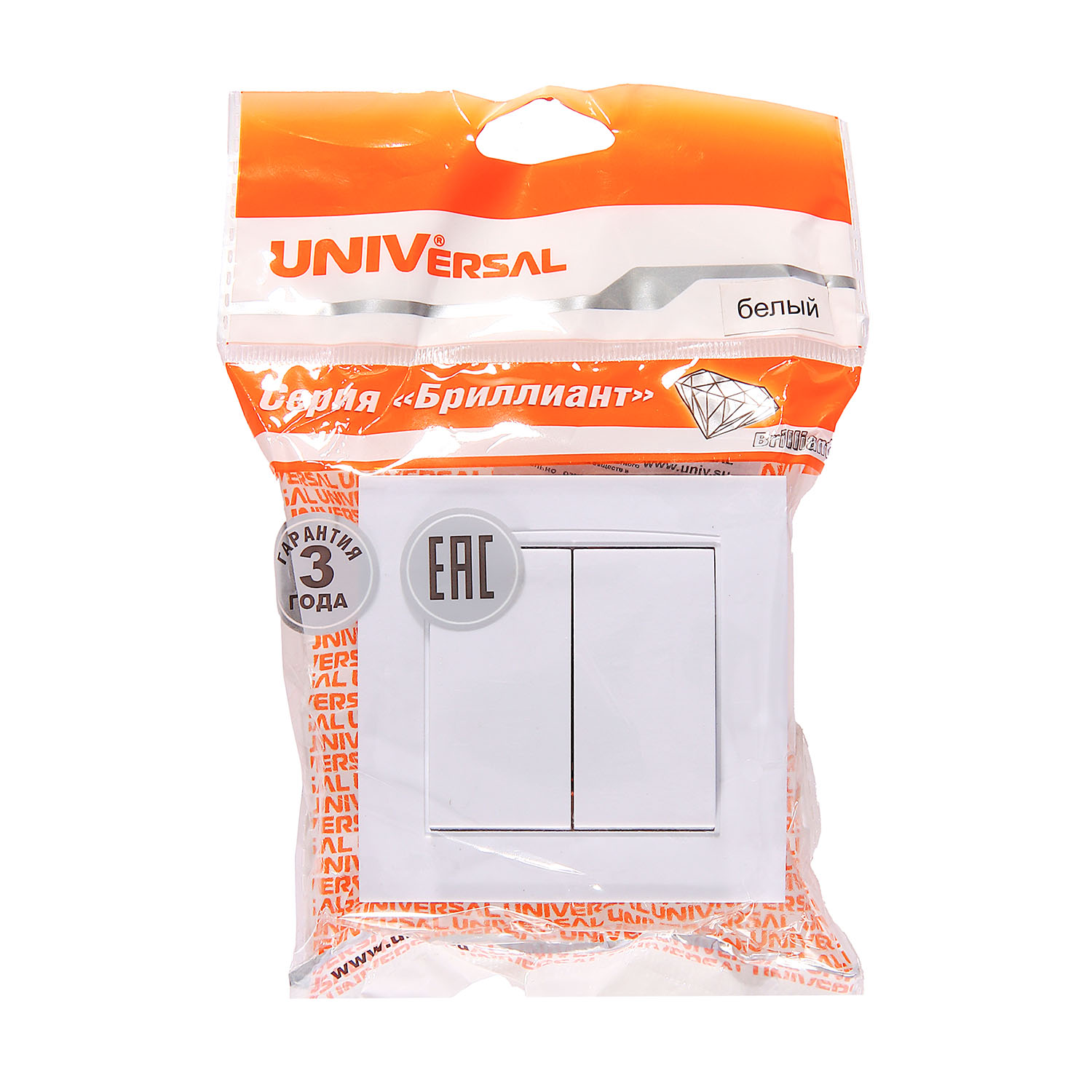 Выключатель Бриллиант СП 2кл. белый 10А IP20 UNIVersal 7947403
