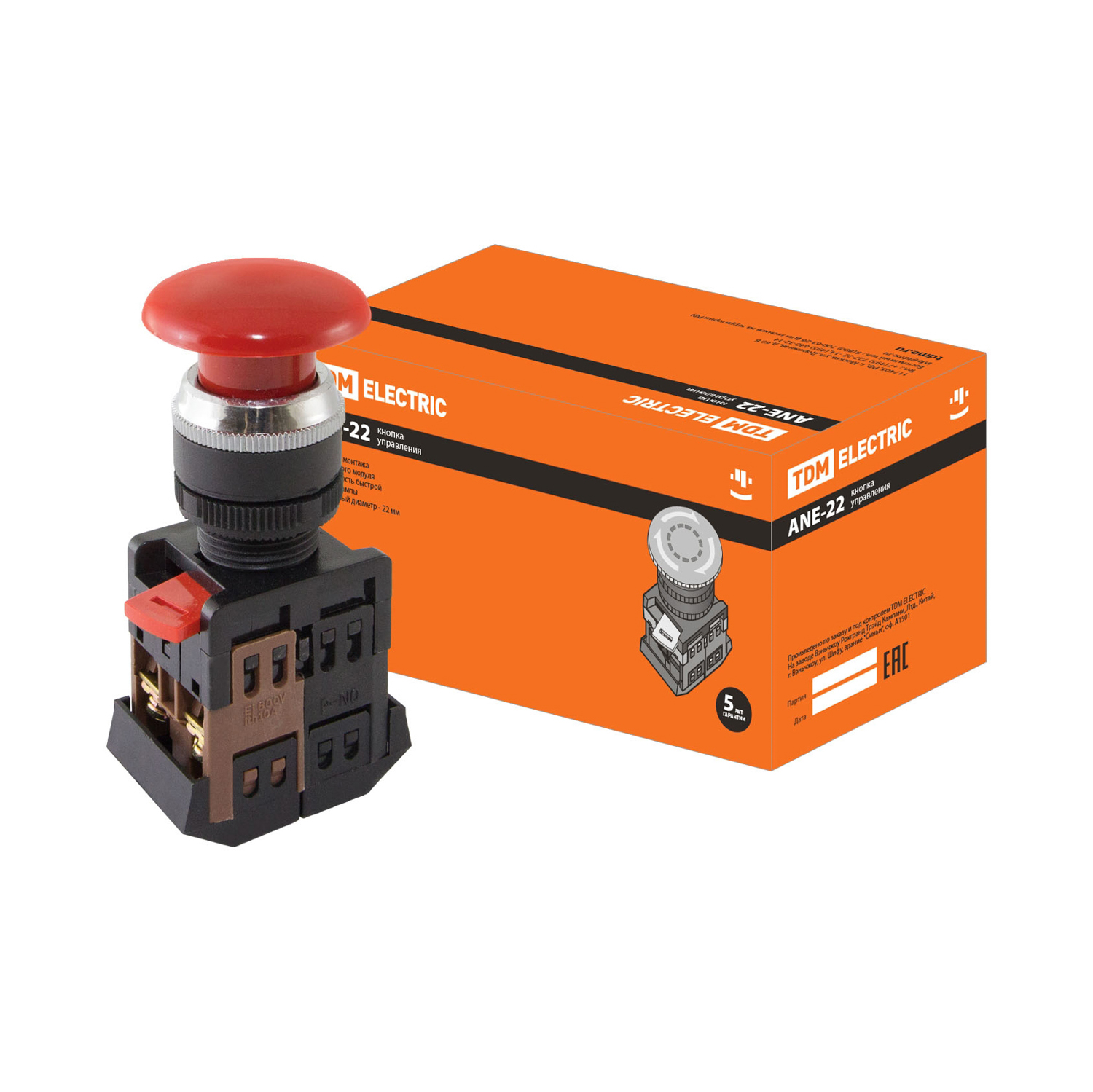 яяяКнопка ANE-22 "Грибок" с фиксацией красный д.22мм неон/230В TDM SQ0704-0019 *1/10
