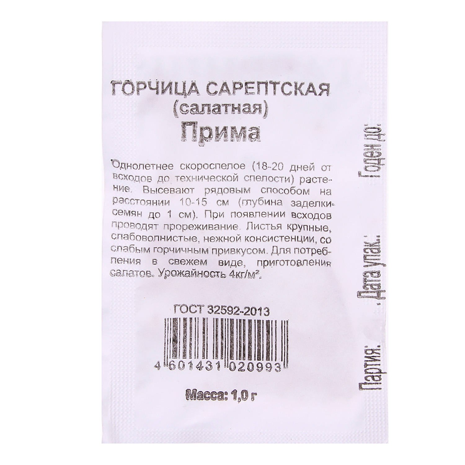 Семена Горчица листовая Прима  1гр Гавриш БЕЛ *20/500