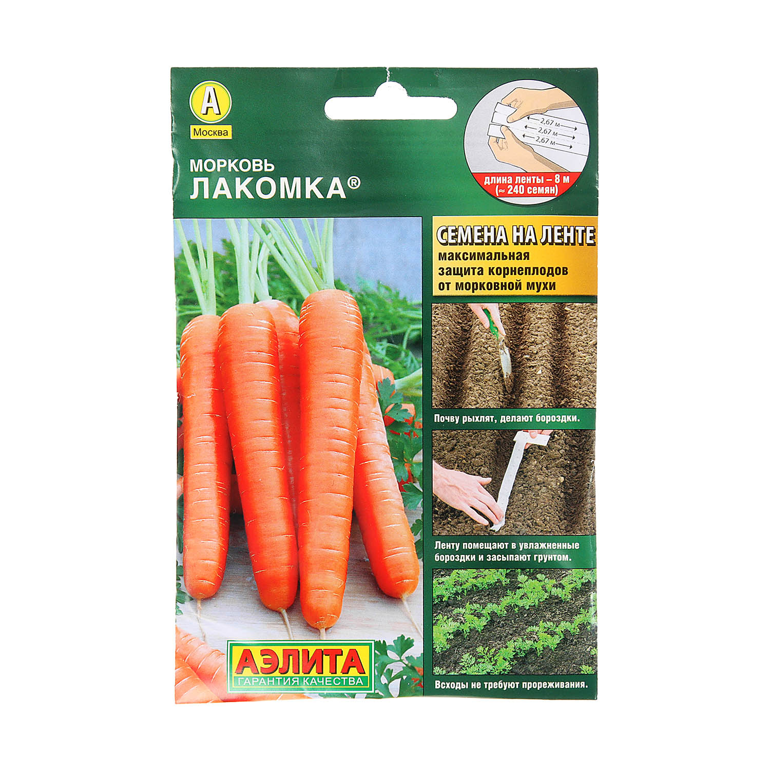 Семена Морковь Лакомка 8м ЛЕНТА Аэлита автор *10/500