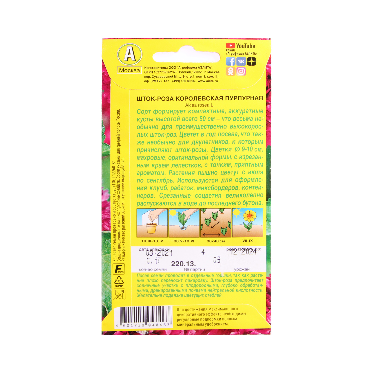 Семена Шток-роза Королевская пурпурная 0,1гр Аэлита цв *10/200