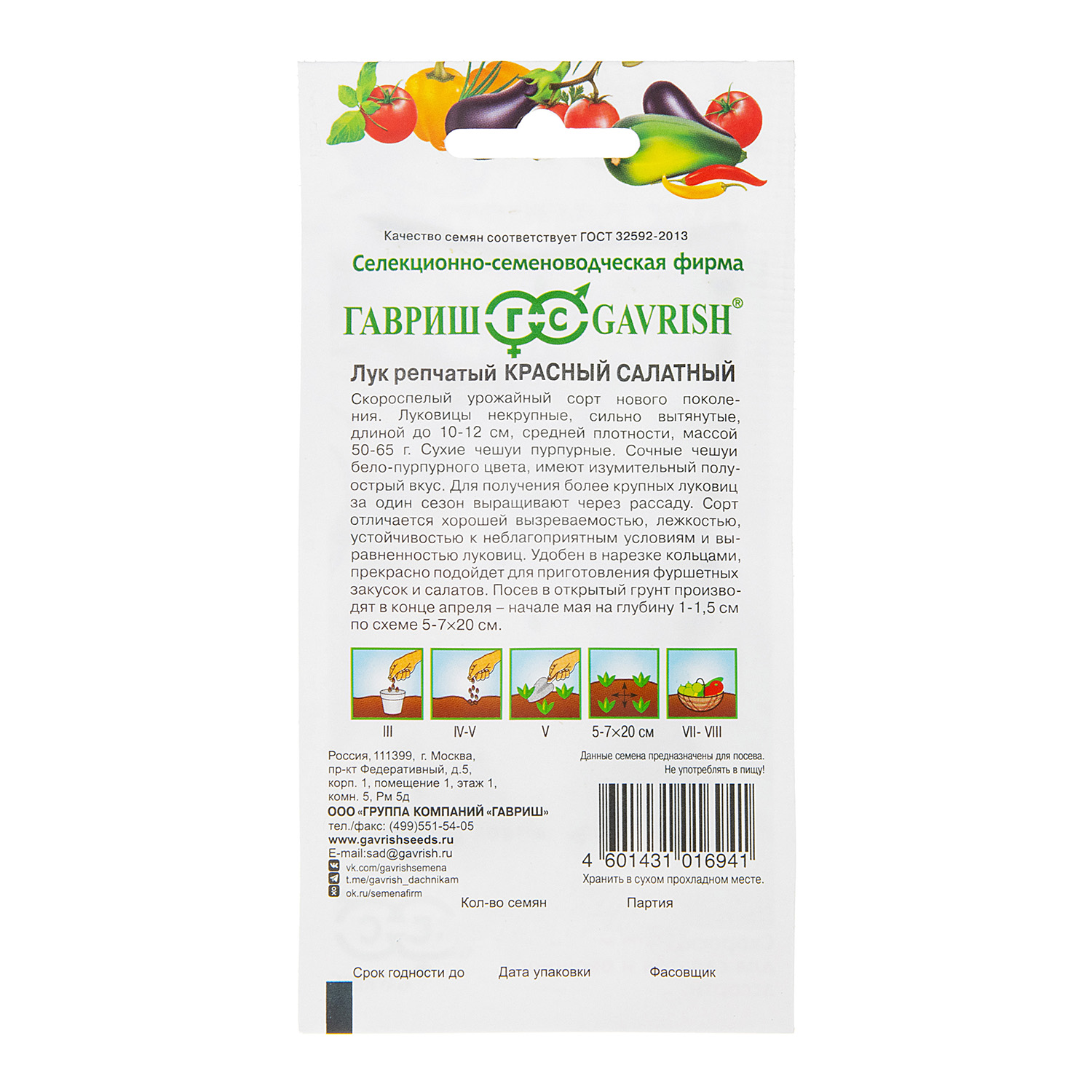 Семена Лук репчатый Красный салатный 0,5гр Гавриш*10/200