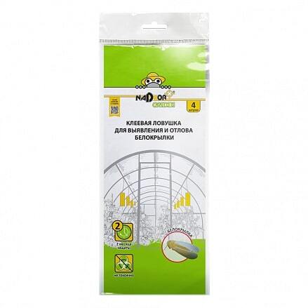 Клеевая ловушка для выявления и отлова белокрылки Nadzor — простое в применении, эффективное, экологически безопасное решение для теплиц. Представляет собой пластиковую основу с липким слоем, который активизируется после снятия защитной бумаги. Особенность устройства — привлекательный для белокрылок желтый цвет пластины и специальный ароматизатор — аттрактант: насекомые приклеиваются к ловушке без использования каких-либо ядохимикатов.