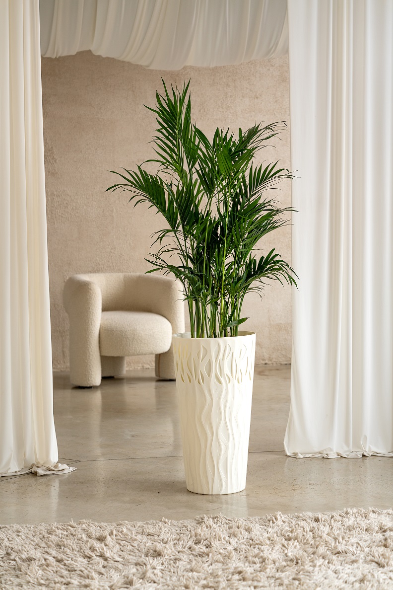 Кашпо пластм. "Winds" высокое 40л d верха 340мм h630мм со встав.18,7л Белос.жасмин IG652210048 *1/4