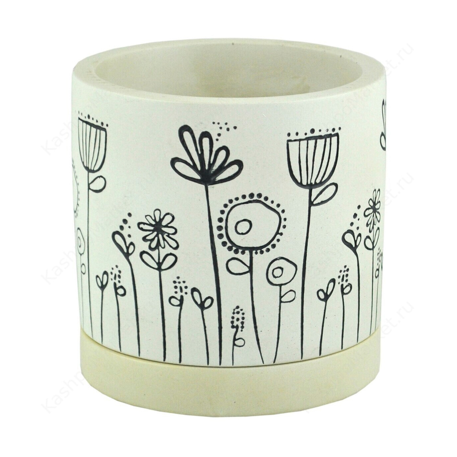 Кашпо гипсовое "Лира" 1,38л d верха 145мм h125мм с поддоном Слоновая кость ("VipSet") *3