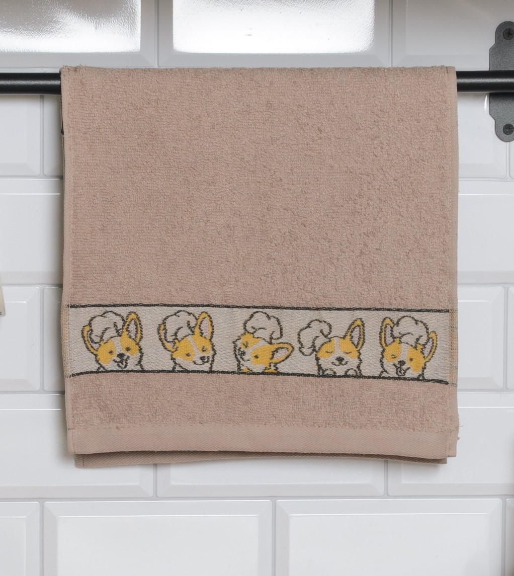Полотенце махровое 30*60см Корги поварята бежевый 400гр/м2 Casa Conforte *10