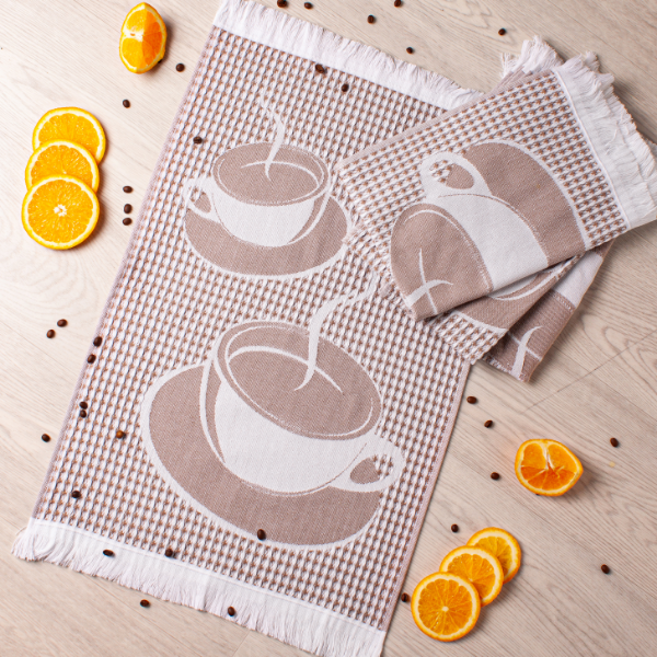 Полотенце вафельное жаккардовое 40*60см Чашки коричневый Casa Conforte *4