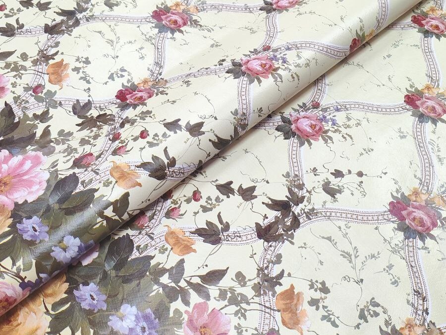 Клеенка на нетканой основе "Верона" "Цветы" роз.-зел.-жел.на беж. шир.1,37м GW-21790 "Great Way" *30