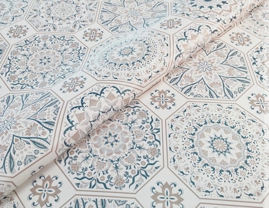 Клеёнка на тканевой основе, полиур.покр."Elegance" "Узоры" Син/Беж. ш.1,37м GW-21590 "Great Way" *20