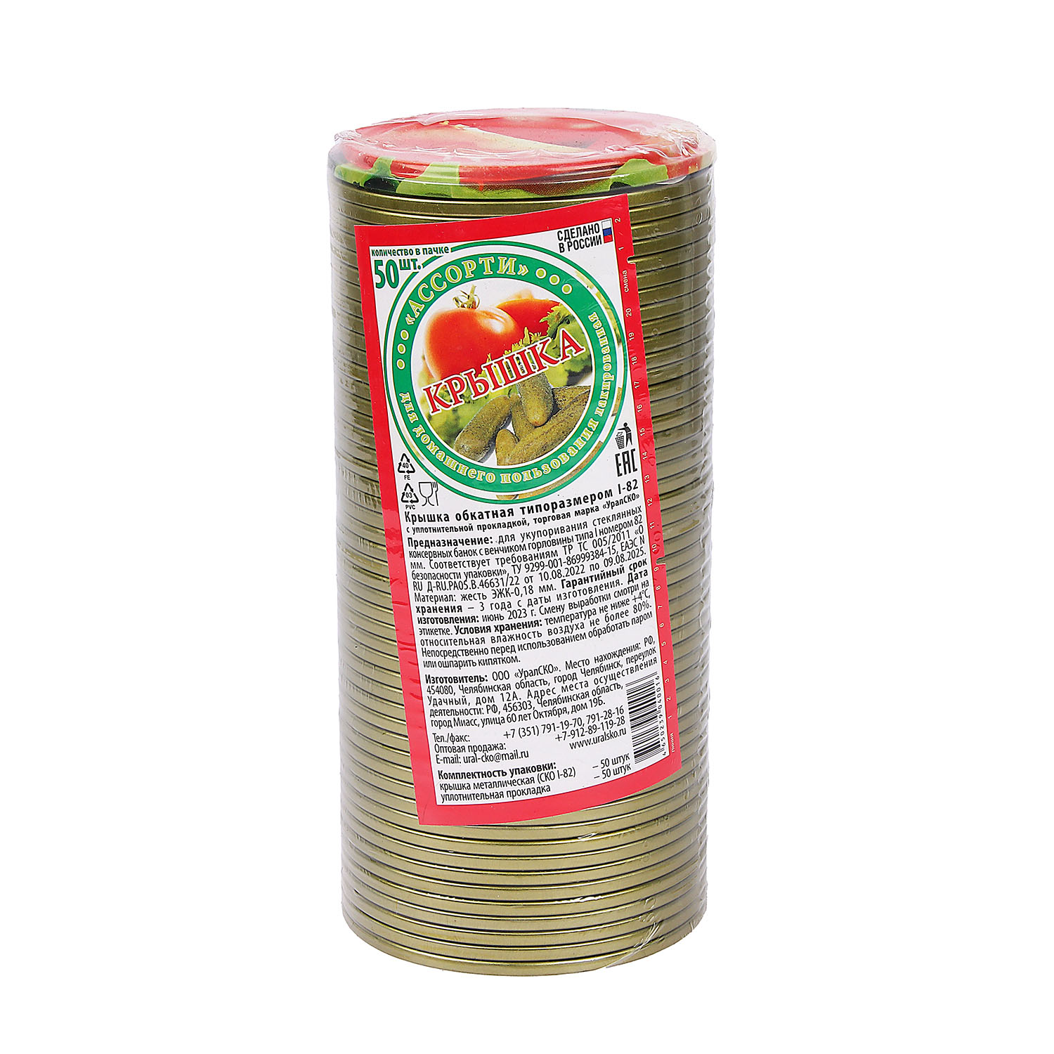 Набор крышек "Ассорти", d 82 мм, УралСКО, 50 шт., закаточные, микс