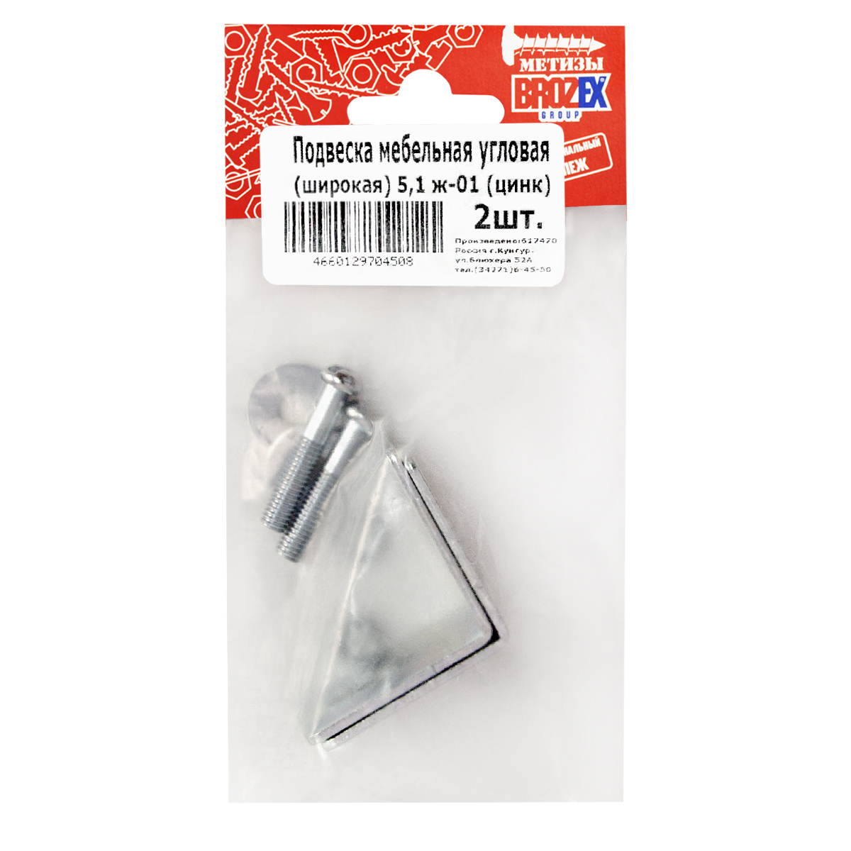 Подвеска мебельная угловая широкая 5.1ж-01 цинк(комплект 2шт.) ДомоСтрой *10/100