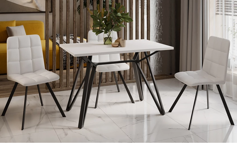 Стол обеденный прямоугольный нераздв.Ройс тип 1 1100мм*680мм БЕЛЫЙ+опора черный муар ТриЯ*1