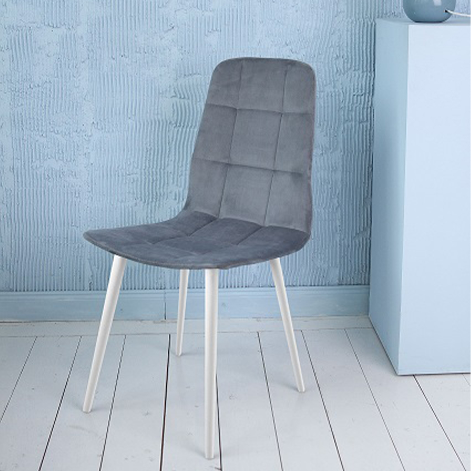 Кресло РУБИ - ЛАЙТ, велюр КОНФЕТТИ БЛЮ СТОУН+металл.каркас ДИАМЕТР трубы 25 мм БЕЛЫЙ *4