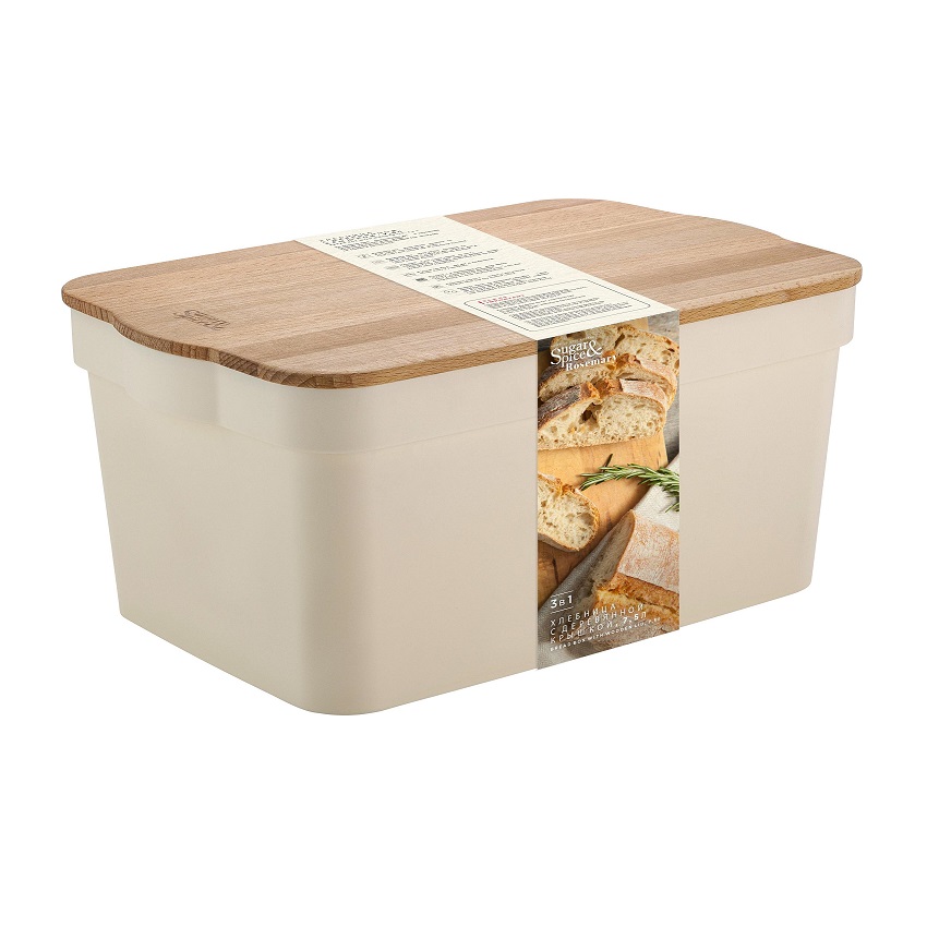 Хлебница пластм. 395x250x177мм с дерев. Крышкой-Доской "Rosemary" SE106412996 ("Sugar&Spice") *1/4