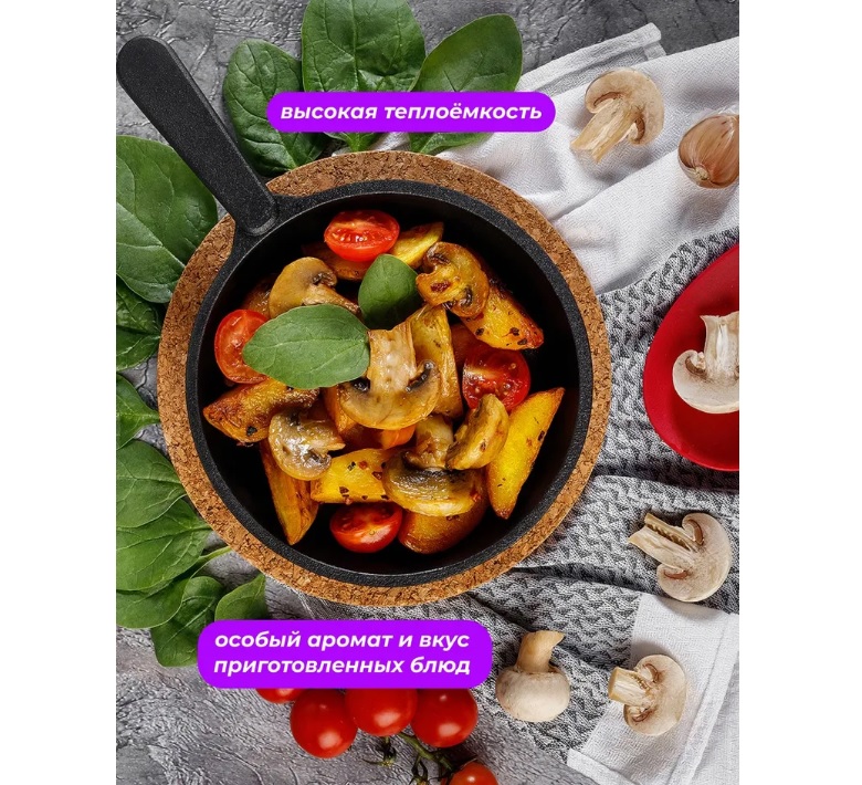 Сковорода чугунная d14,5см, выс.борта 3см, с литой ручкой "Порционная" ч1430 "Камская посуда" *1/10