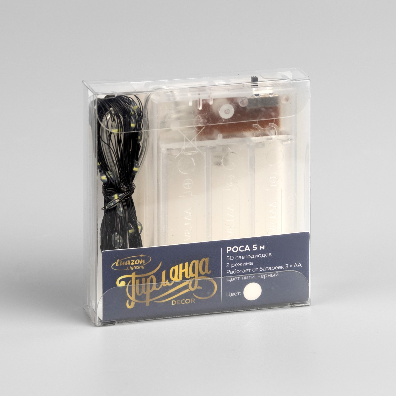 Гирлянда Нить 5 м 50LED белый 2 режима черная нить роса IP20 AAх3 (нет в комплекте) 5198323 *1/200