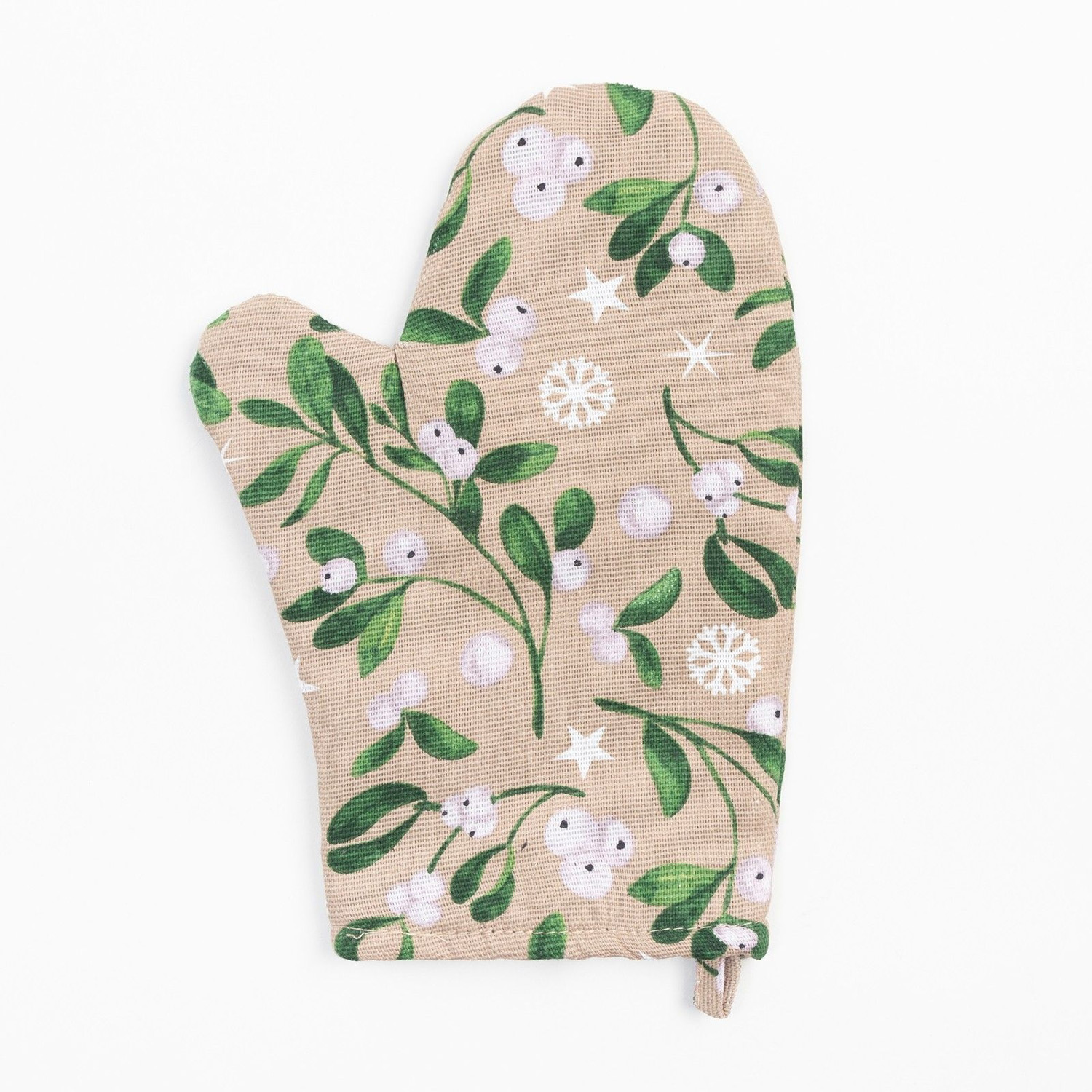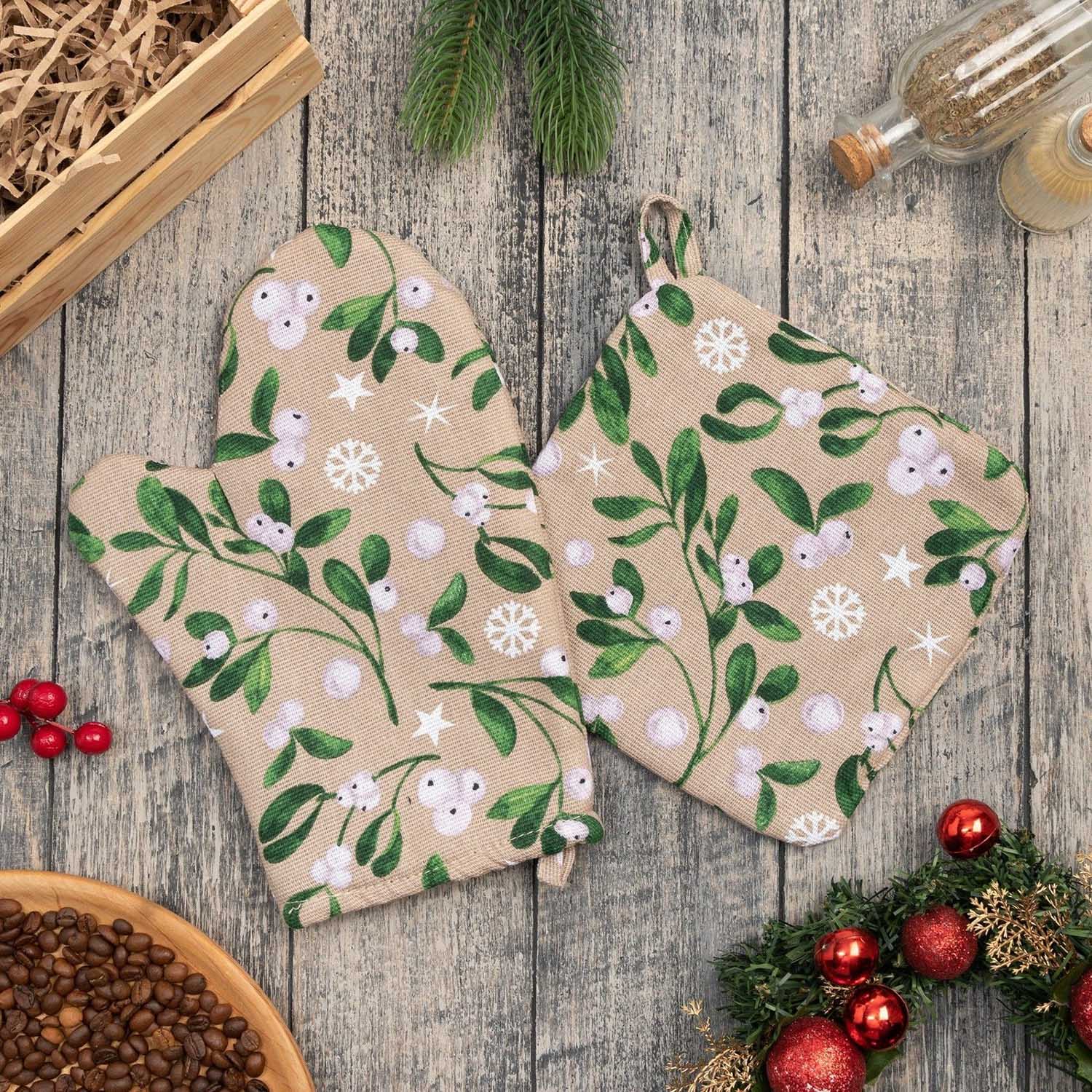 Набор прихваток Доляна Frosty berries, варежка 20х27 см, прихватка 19х19 см, хлопок, бежево-зеленый