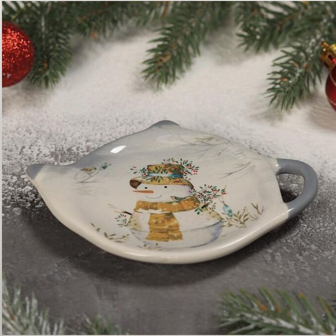 Подставка для чайного пакетика керам. "Новый год" "Рождественский снеговик" 6249583 "Доляна" *1/144