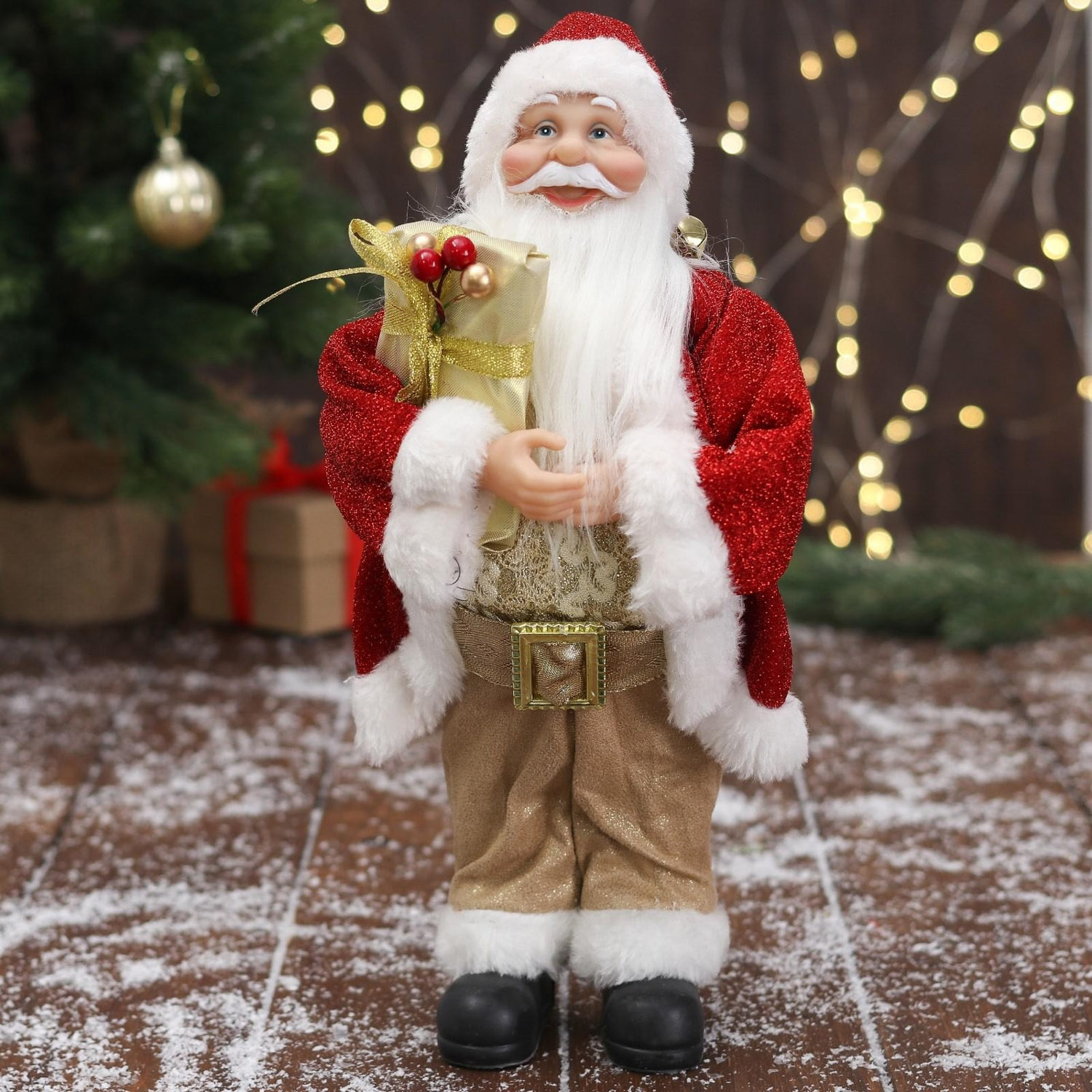 Дед Мороз "В золотисто-красном костюме, с ремешком, с подарками" 15х30 см 6949626