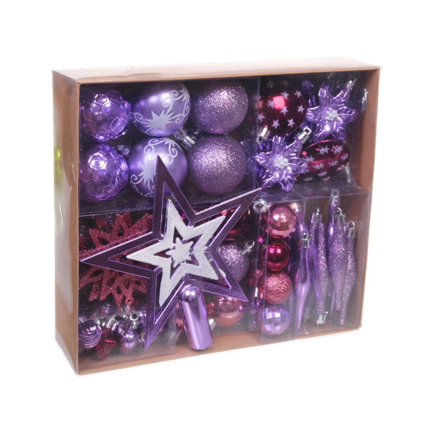 Набор ёлочных украшений "Сказочная зима" 45 предметов, Рубин/Розовый/Лаванда