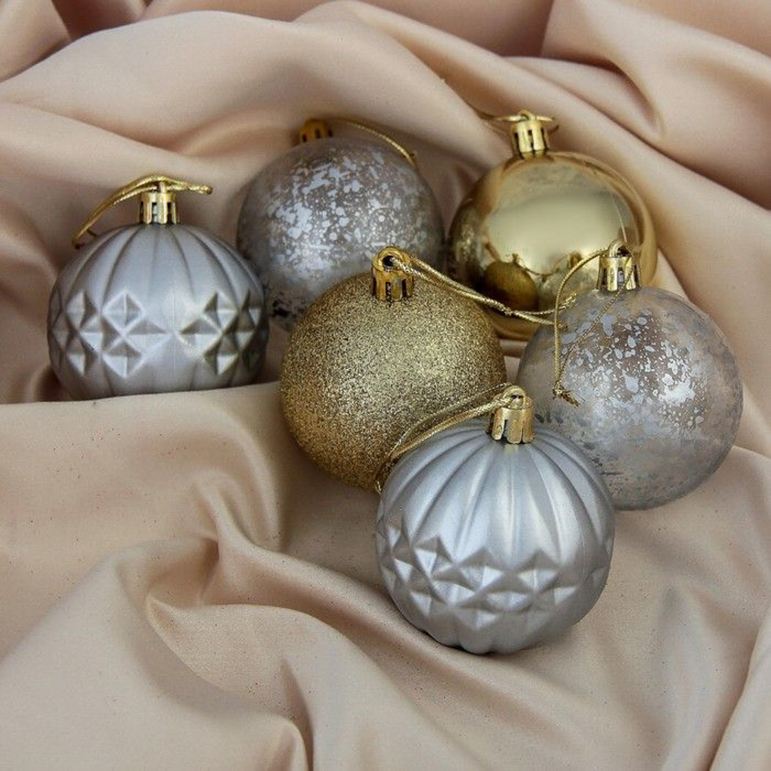 Ёлочные игрушки "Юла" 8 см (набор 3 шт), розовое золото
