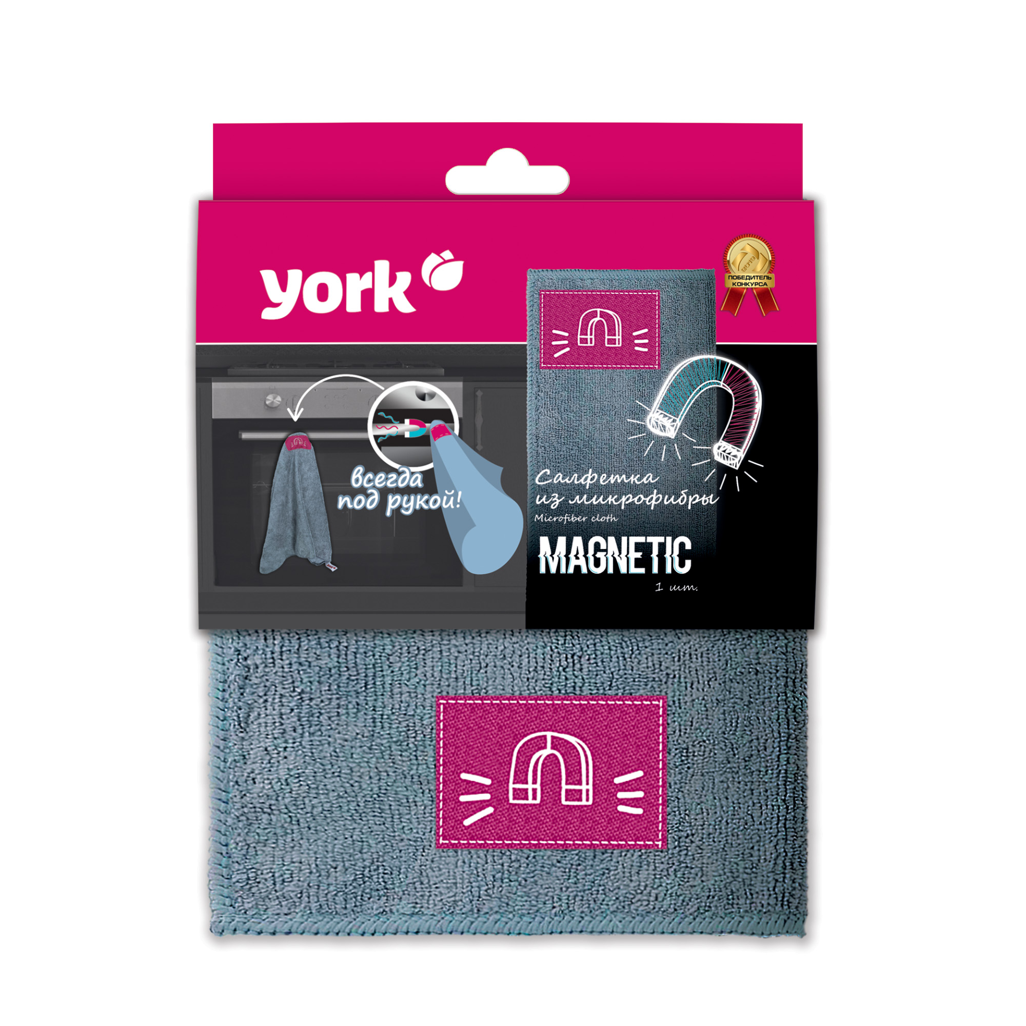 Салфетка для уборки универсальная микрофибра "MAGNETIC" 40х50см, с магнитом 026260 "York" *1/32
