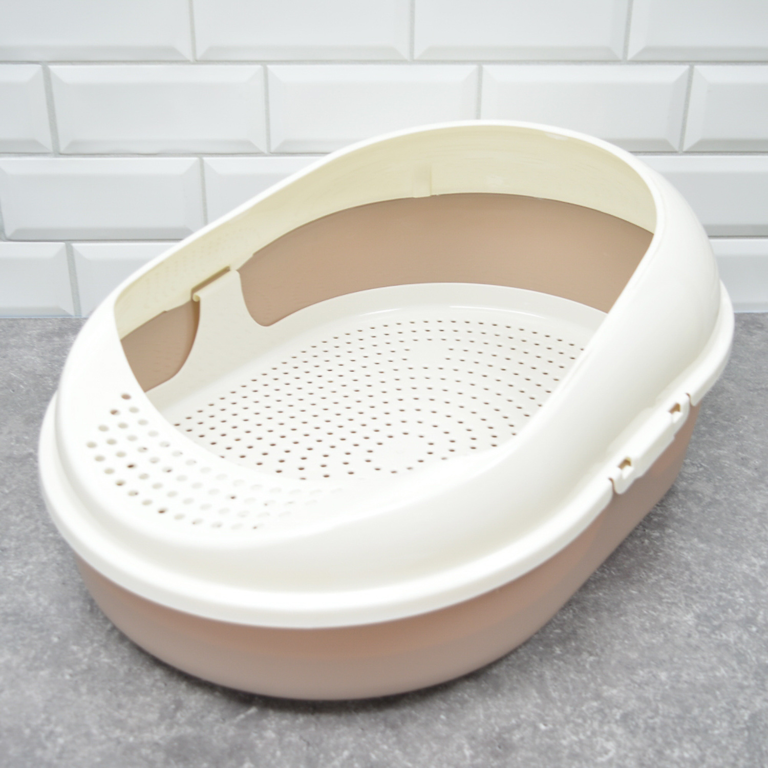 Лоток-"туалет для кошек" пластм. с выс.бортами 519х378х213мм съем.Решет.+Совок Какао арт.96103 *1/4
