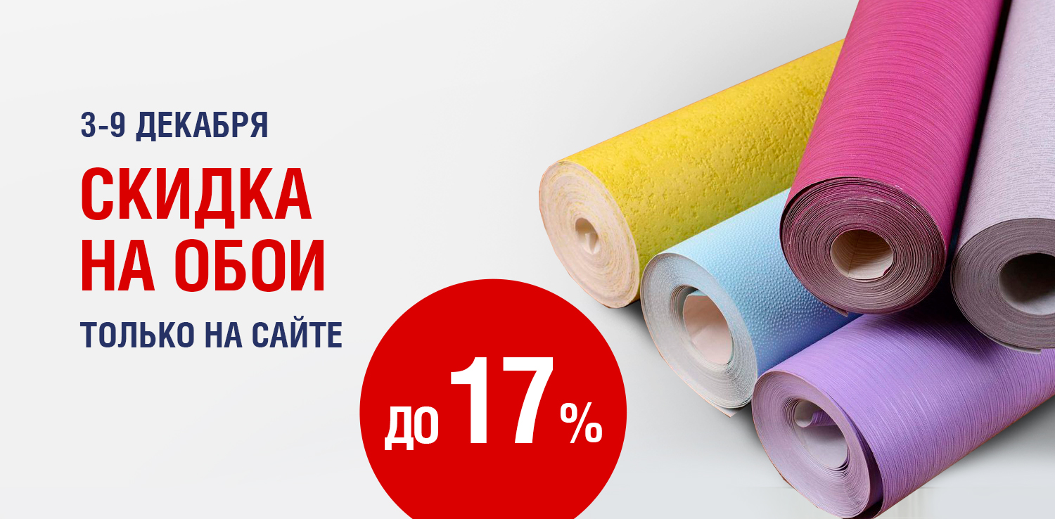 Распродажа обоев в сети Домострой! С 3 по 9 декабря при заказе на сайте — скидка до 17% на обои. Это отличная возможность обновить интерьер по привлекательным ценам!