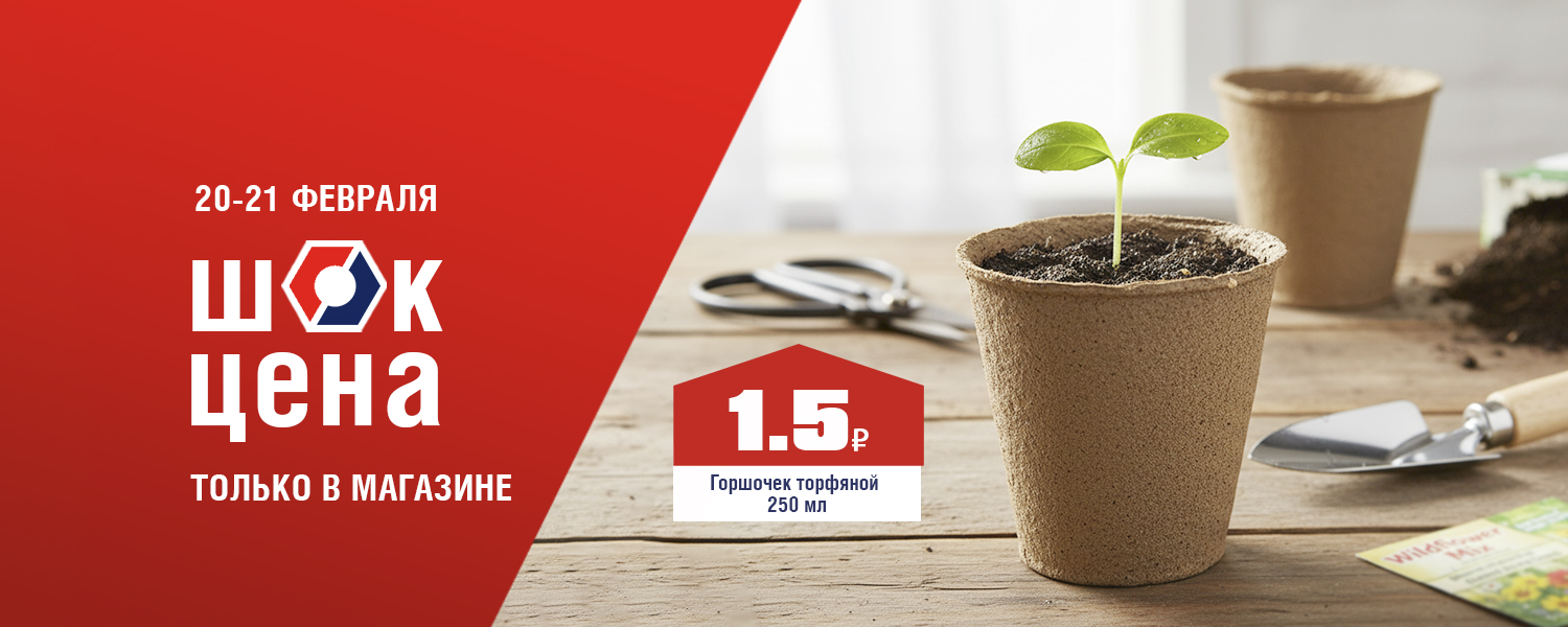 Хотите забыть о пикировке и поврежденных корнях? Торфяной горшочек — ваш надежный помощник. Рассада растет в нем до высадки, а затем отправляется в грунт без стресса и травм. Биоразлагаемый материал горшочка обеспечивает дополнительное питание и идеальную приживаемость. 20 и 21 февраля в розничных магазинах ДомоСтрой не пропустите ШОК-цену: