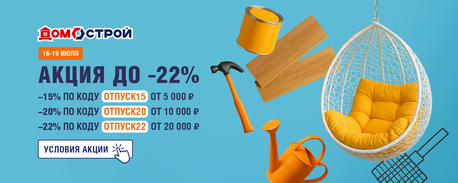 Вам отпускные от ДомоСтрой! Неважно где вы проведёте лето: на даче, в городе, на пляже — скидки пригодятся везде. Поэтому мы снижаем цены с 16 по 19 июля: